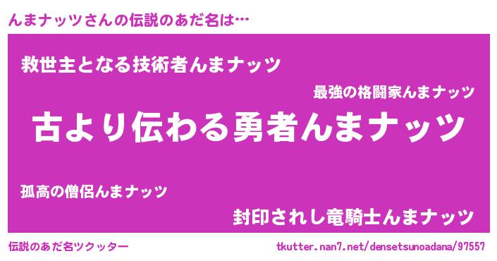 | 胡散臭い通販商品みたいなあだ名 | 『来世でも幸せになれる水素水…その名も「んまナッツ」』 |
