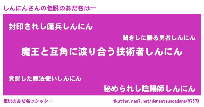 | ヒーロー風カッコイイあだ名 | 『慈愛の使者しんにん』『ネオシンニン』 |