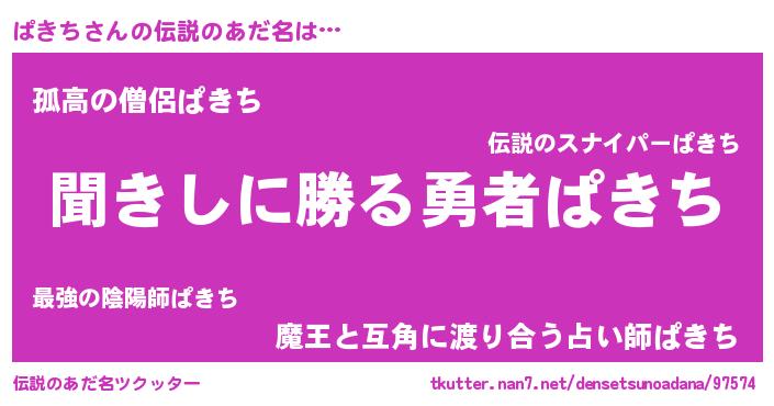 | 意味不明あだ名 | 『住所不定無職ぱきち(93歳)』 |