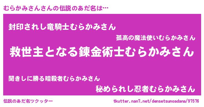 | 男性向けラノベタイトル風あだ名 | 『ノーゲーム・ノームラカミサン』 |