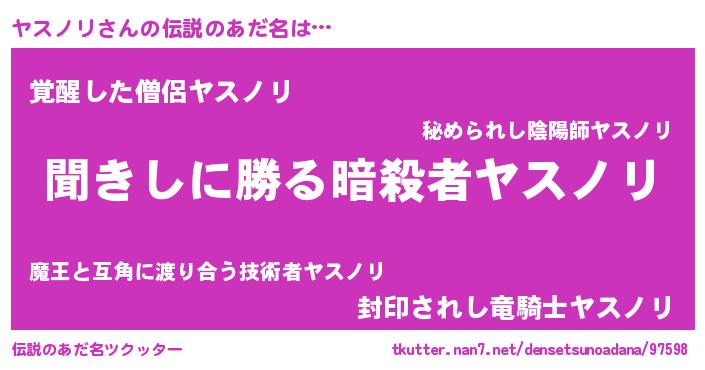 | ヒーロー風カッコイイあだ名 | 『ネオヤスノリ』『炎刃騎士ヤス』 |