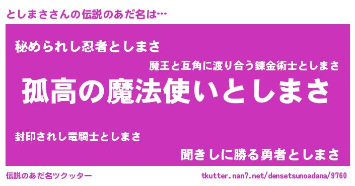 | 胡散臭い通販商品みたいなあだ名 | 『信頼と実績のサプリメント…その名も「としまさ」』 |
