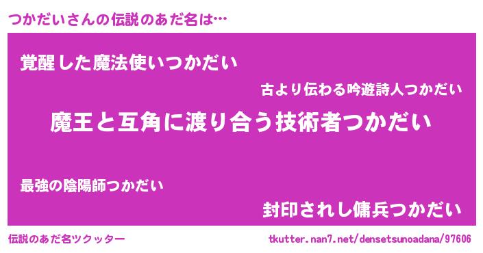 | ヒーロー風カッコイイあだ名 | 『仮面ツカダー』『正義の使者つかだい』 |