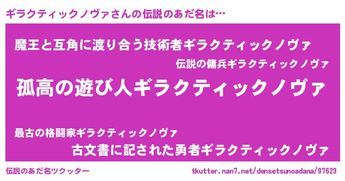 | 意味不明あだ名 | 『とにかく怪しいギラクティックノヴァ』 |