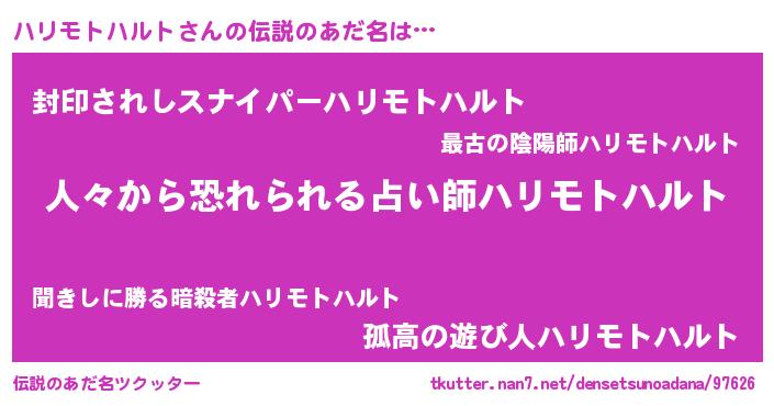| 胡散臭い通販商品みたいなあだ名 | 『100人中100人が認めたイリジウム磁石…その名も「ハリモトハルト」』 |
