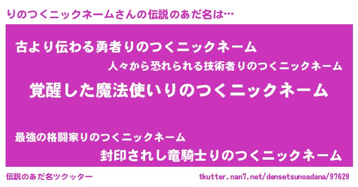 | 女子向けラノベタイトル風あだ名 | 『りのつくニックネームの玉の輿計画!』 |