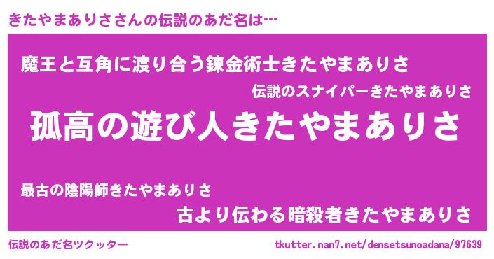 | ヒーロー風カッコイイあだ名 | 『魔戒騎士キタ』『仮面キタダー』 |