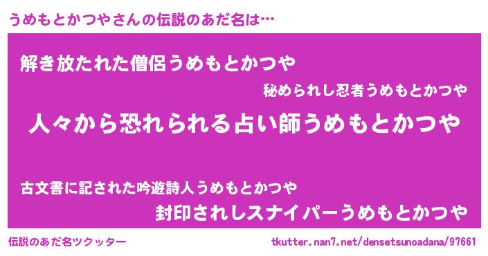 | 胡散臭い通販商品みたいなあだ名 | 『100人中100人が認めたイリジウム磁石…その名も「うめもとかつや」』 |