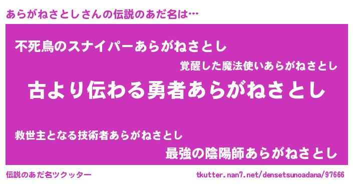 | 意味不明あだ名 | 『永久保存あらがねさとし』 |