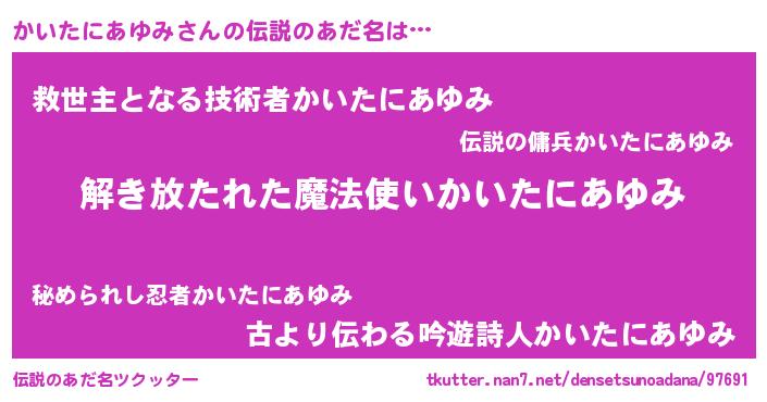 | ヒーロー風カッコイイあだ名 | 『銀牙騎士カイ』『ネオカイタニアユミ』 |