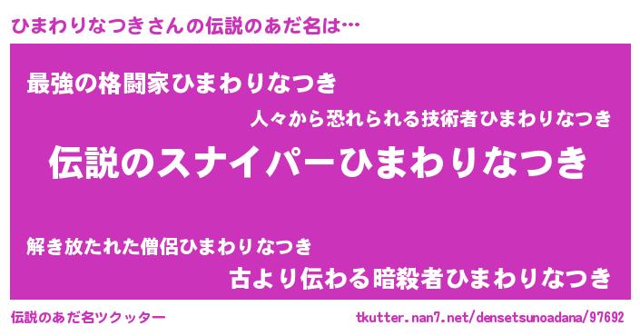| 胡散臭い通販商品みたいなあだ名 | 『必ず成功する霊験あらたかなお札…その名も「ひまわりなつき」』 |
