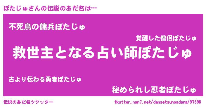 | 男性向けラノベタイトル風あだ名 | 『この素晴らしい世界にぽたじゅを!』 |