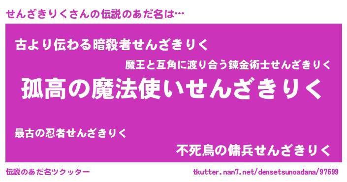 | 胡散臭い通販商品みたいなあだ名 | 『信頼と実績のサプリメント…その名も「せんざきりく」』 |