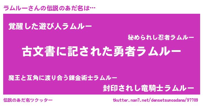 | ヒーロー風カッコイイあだ名 | 『究極戦士ラムルー』『ネオラムルー』 |
