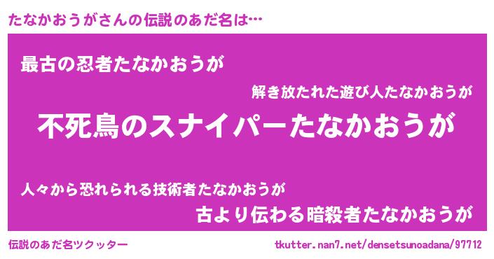 | 胡散臭い通販商品みたいなあだ名 | 『モテモテ間違いなし霊験あらたかなお札…その名も「たなかおうが」』 |