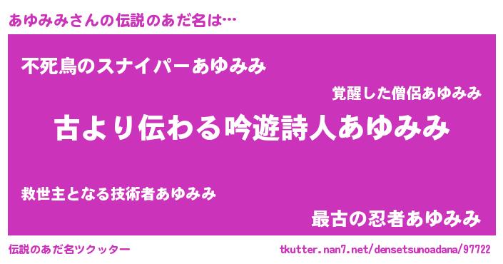 | 意味不明あだ名 | 『永久保存あゆみみ』『ニラ科あゆみみ属』 |