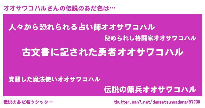 | 欧米人風あだ名 | 『ダレノガレオオサワコハル』 |