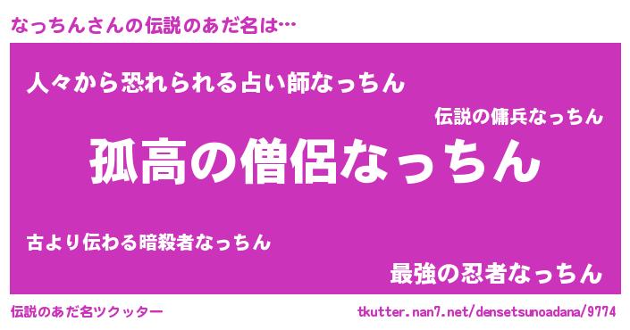 | ヒーロー風カッコイイあだ名 | 『暗黒騎士ナッ』『正義の使者なっちん』 |