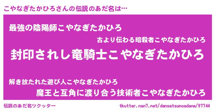 | ヒーロー風カッコイイあだ名 | 『スーパーコヤナギタカヒロ』 |