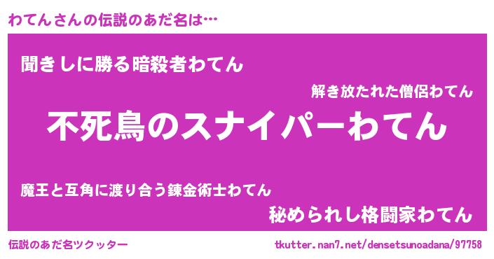 | ヒーロー風カッコイイあだ名 | 『サイバー戦士ワテン』『スーパーワテン』 |