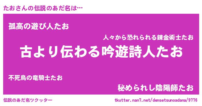 | 男性向けラノベタイトル風あだ名 | 『たおという概念が存在しない退屈な世界 』 |