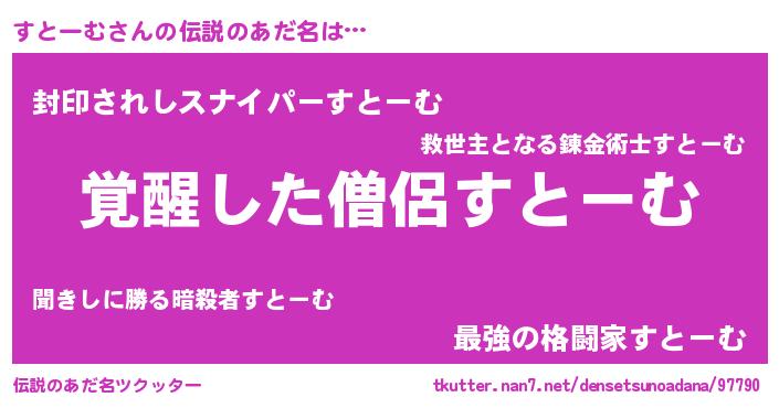 | 女子向けラノベタイトル風あだ名 | 『すとーむ様がみてる』 |