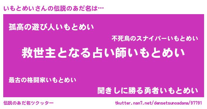 | ヒーロー風カッコイイあだ名 | 『慈愛の使者いもとめい』『仮面イモダー』 |