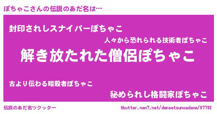 | ヒーロー風カッコイイあだ名 | 『幻影騎士ポチ』『スーパーポチャコ』 |