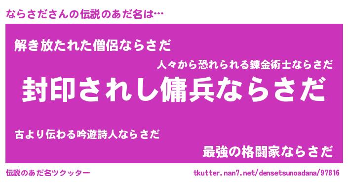 | 恥ずかしいあだ名 | 『プリティーならさだ』『ナラリンリン』 |