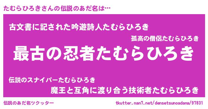| 意味不明あだ名 | 『たむらひろきフォーエバー』 |