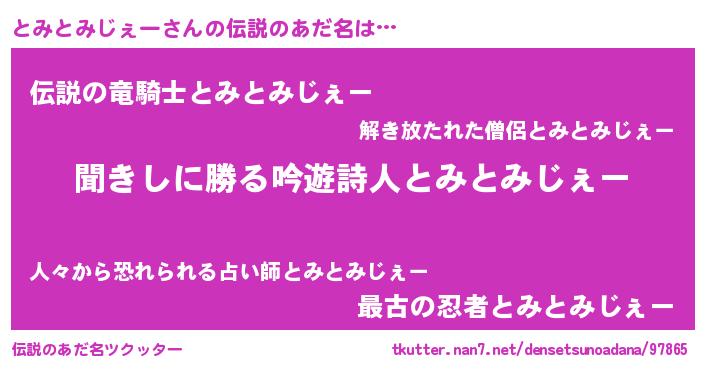 ヒーロー風カッコイイあだ名 | 『ネオトミトミジェー』『仮面トミダー』 |