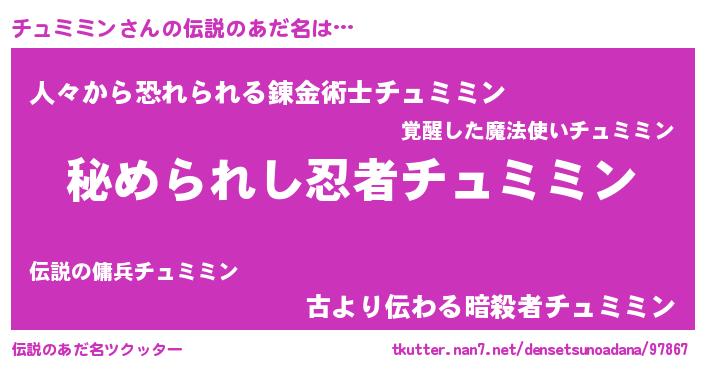 | ファンタジー風あだ名 | 『エターナルチュミミンー』『ゼチュトゥ』 |