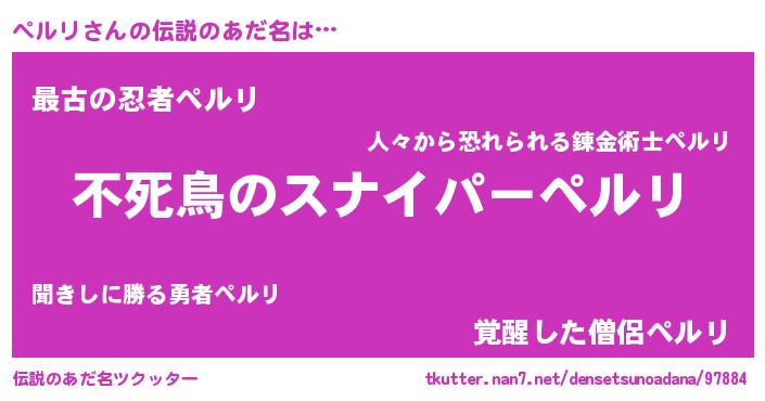| 胡散臭い通販商品みたいなあだ名 | 『モテモテ間違いなし霊験あらたかなお札…その名も「ペルリ」』 |
