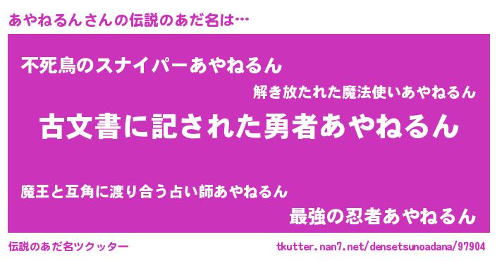 | 男性向けラノベタイトル風あだ名 | 『誰もが恐れるあのあやねるんが、ぼくの専属メイドになるようです。』 |