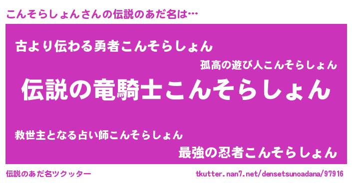 | 男性向けラノベタイトル風あだ名 | 『こんそらしょんの憂鬱』 |
