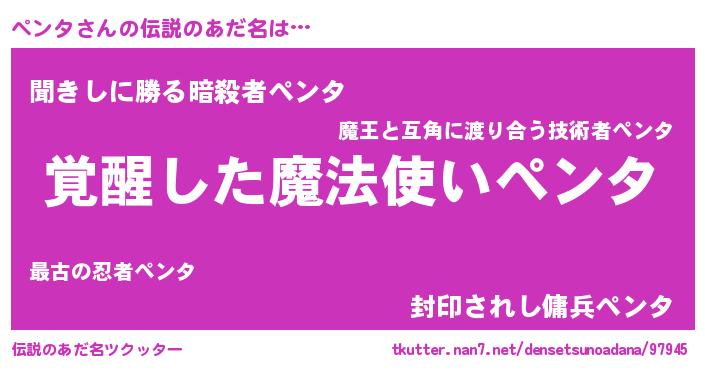 | ヒーロー風カッコイイあだ名 | 『天弓騎士ペン』『ネオペンタ』 |