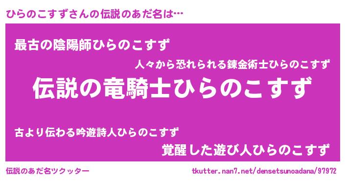 | ヒーロー風カッコイイあだ名 | 『スーパーヒラノコスズ』『仮面ヒラダー』 |