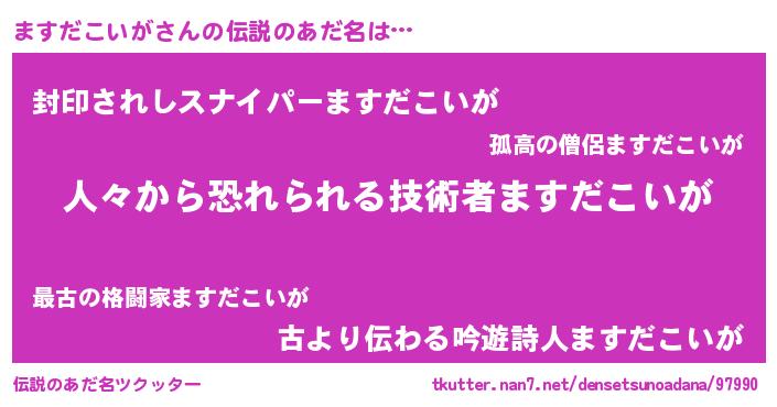 | ヘコむあだ名 | 『ますふぇ~』『ますだこいが(遠い目)』 |