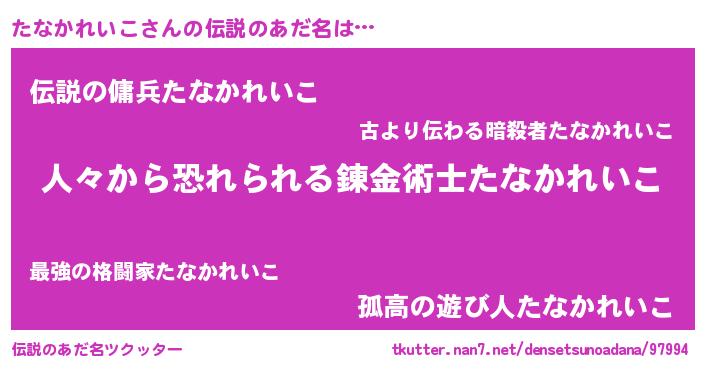 | 意味不明あだ名 | 『住所不定無職たなかれいこ(91歳)』 |