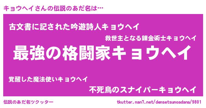 | ヒーロー風カッコイイあだ名 | 『ウルトラキョウヘイマン』 |