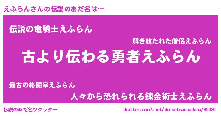 | ヒーロー風カッコイイあだ名 | 『ネオエフラン』『仮面エフダー』 |
