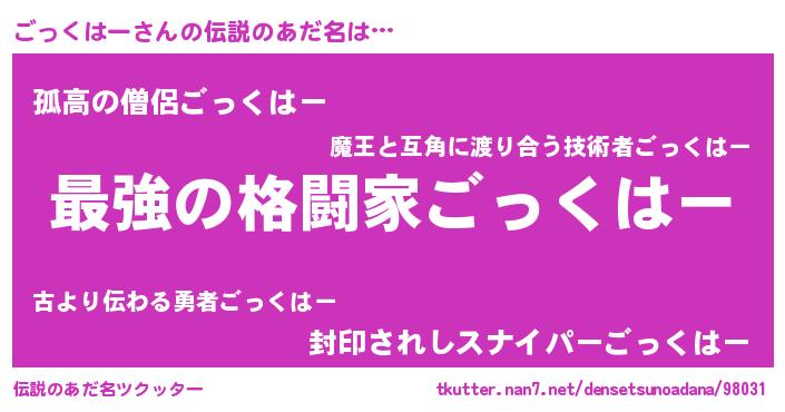 | 男性向けラノベタイトル風あだ名 | 『うちのごっくはーが世界を掌握している!』 |