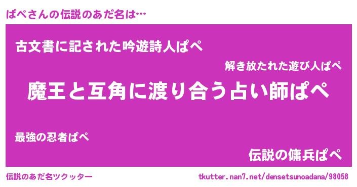 | ヒーロー風カッコイイあだ名 | 『愛の使者ぱぺ』『仮面パペダー』 |