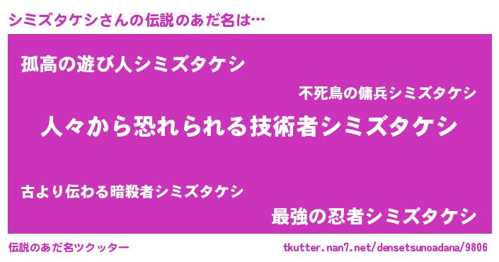 | ヒーロー風カッコイイあだ名 | 『友情の使者シミズタケシ』 |