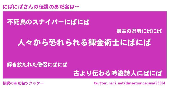 | ヒーロー風カッコイイあだ名 | 『正義の使者にぱにぱ』『仮面ニパダー』 |