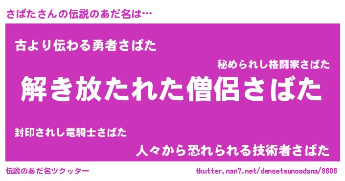 | ヒーロー風カッコイイあだ名 | 『サイバー戦士サバタ』『仮面サバダー』 |