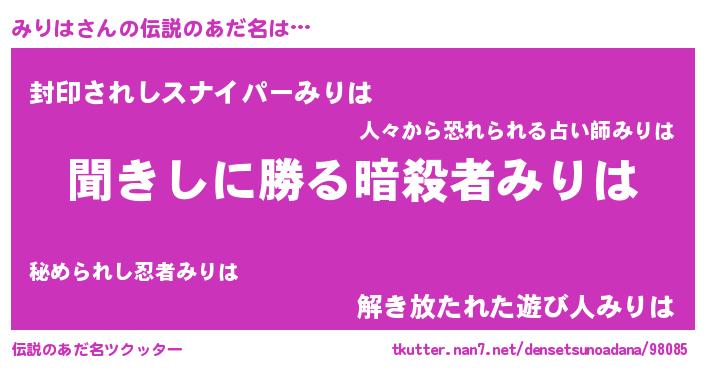 | 意味不明あだ名 | 『自称みりは』『永久保存みりは』 |