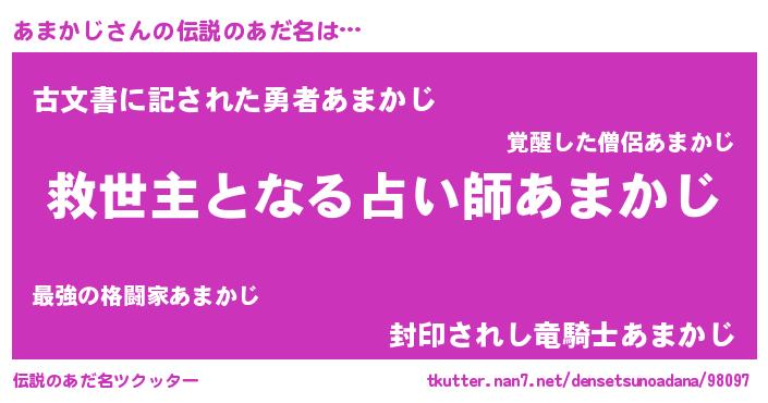 | 男性向けラノベタイトル風あだ名 | 『Re:あまかじから始める異世界生活』 |