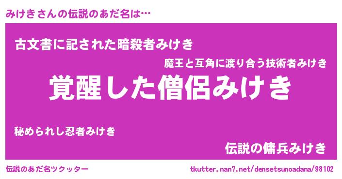 | 意味不明あだ名 | 『とにかく怪しいみけき』『自称みけき』 |
