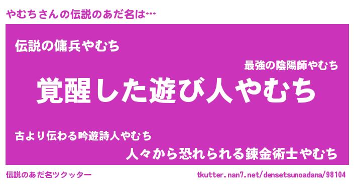 | 女子向けラノベタイトル風あだ名 | 『やむち様がみてる』『死神やむちの再婚』 |